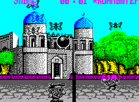 Игра только что выпущена питерской группой ZX-MASTERS. Т.к. о самой игре было много написано еще в ZF#7, то здесь будут перечислены только основные харак- теристи игры и подробно сказано об озву- чивании игры под музыкальную карту GENERAL SOUND (GS). Игра представляет собой подобие волей- бола. Цель игры тривиальна для спортив- ных игр - победить соперника. Чем же она отличается от себе подобных и других игрушек? На этот вопрос мы и ответим. Среди игровых достоинств игры можно выделить такие, как: - возможность играть вдвоем; - возможность играть тремя разными сна- рядами - бомбой, шариком и мячом. Для каждого снаряда существуют свои грави- тационные характеристики и свои прави- ла игры, что делает игру более разно- образной и дает большие возможности для маневров, нежели в обычном волей- боле; - действие игры может происходить на фоне одного из четырех пейзажей со своеобразной анимацией на заднем пла- не: в городе плещется вода в заливе и выглядывает перископ некой подводной лодки, в пустыне летает вертолет, у мечети роятся бабочки, в лесу под но- гами ползают букашки ( + паучки в тур- бо-режиме); - обширное меню опций, где можно пере- настроить всю игру под свое усмотрение - хорошее музыкальное оформление под AY: 6 мелодий и 6 эффектов, и просто ши- карное оформление под GS. - для GS введен стерео-режим, благодаря которому события, происходящие в ле- вой части экрана, слышны в левом дина- мике, а в правой части - в правом. Это придает игре дополнительную реалистич- ность. Среди технических характеристик можно выделить следующие: - вся динамическая часть игры по времени укладывается в одно прерывание, т.е. в один кадр изображения программа успевает вывести 3 больших спрайта (5*4, 5*4 и 3*4 знакоместа) по маске и фоновую анимацию (количествово знако- мест меняется в зависимости от уровня и производительности машины). Кроме того, в оставшееся время программа за- нимается расчетами и обработкой дан- ных. Таким образом, вся анимация про- исходит очень плавно, и нет никаких дерганий. - чтобы на всех компьютерах была идеаль- ная синхронизация вывода графики и хода луча кинескопа, используется спе- циальный алгоритм, исключающий появле- ние мерцающих спрайтов, как это есть в играх DESTINY MISSION, RED HEAT и других; - в полной мере автоматически поддержи- вается турбо-режим на 3-ем и 4-ом уровнях (больше фоновой анимации); - организуется RAM-диск емкостью 128K в компьютерах Scorpion-256 и KAY-256, для хранения двух мелодий под GS, если эта карточка подключена; - поддерживается KEMPSTON MOUSE: в меню - двух- и трех-кнопочная, в игре - только трехкнопочная (движения: влево, прыжок, вправо); - емкость игры более 700K, поэтому для того, чтобы игра влезла на 1 диск, пришлось использовать специальный фор- мат диска. Теперь можно сказать о поддержке GS. Всего в игре 7 музык, 1 позывной и 14 эффектов: 1. Отбивание мяча игроком. 2. Отскок мяча от сетки. 3. Отбивание бомбы игроком. 4. Отскок бомбы от сетки. 5. Отбивание шарика игроком. 6. Отскок шарика от сетки. 7. Приветствие подающего игрока в начале раунда. 8. Выкрик Колобка при прыжке. 9. Выкрик Элвиса при прыжке. 10. Взрыв бомбы. 11. Лопание шарика. 12. Переход подачи. 13. Выигрыш/проигрыш одного из игроков. 14. Щелчок при выборе в музыкальных оп- циях. В музыкальных опциях можно подобрать необходимые музыкальные характеристики: - выбрать режим работы GS: - музыка + эффекты; - только музыка; - только эффекты - для этог