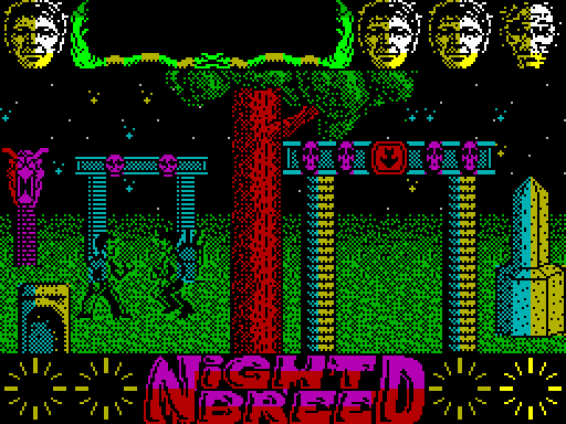 Очень большая, и очень интересная игра. По стилю напоминает ASSASIN, но по графике не уступает уже упоминавшейся ASTRO MARINE CORP., хотя в NIGHT BREED экраны статичес- кие и не скроллируются, а просто перерисо- вываются. Игра представляет собой не просто стрелял- ку, а довольно плодотворное сочетание ACTION/ADVENTURE. Ваша цель - это найти и освободить свою девушку у злобных зомби из NECROPOLIS'а - города мёртвых. На сегодняшний день я видел две дисковых версии этой игры. Самая первая версия пришла в Самару в середине декабря и была сделана прибалтийской группой ZERO. Эта версия была вполне рабочей, но занимала более 700 секторов дискового пространства. Правда, несколько смягчал положение TURBO LOADER, но.... Вторая версия пришла через месяц и была сделана MAX'ом IWAMOTO from CODE BUSTERS. Именно эту версию я вам и рекомендую! Мало того, что она занимает всего 449 секторов, так ещё, как обычно нажимая на клавишу "S" во время загрузки, вы сможете получить на диске файл в формате ZX-WORD'а, в котором подробно описаны все этапы прохождения игры. Так держать, MAXI! А если рассматривать эту проблему в корне, то уже не первая игра приходит в довольно дикой версии сначала из Прибалтики, а по- том, спустя месяцы, появляется более ка- чественная и полная версия от других хак- керов, тоже имеющих доступ в INTERNET. Так было по крайней мере с двумя известными "драками" - FINAL FIGHT 128 и STREET FIGHTER 2. Хорошо это или плохо - сказать трудно. И всё же я надеюсь, что впредь на- ши хаккеры будут производить качественные дисковые версии сразу, или по крайней мере предупреждать пользователей о том, что их версия возможно неполная. Не знаю как в эту игру играли люди на кас- сетах, но даже с дисководом в режиме 128K идут периодические подгрузки уровней. Всё это очень напоминает сладкие времена ЗВЁЗДНОПО НАСЛЕДИЯ. Причём подгрузка,как и облом, приходят незаметно. Меня угораздило провалиться в яму,так я сначала десять эк- ранов пролетел,потом подгрузился уровень и я пролетел ещё десять экранов вниз. Самое интересное - жив остался! По сему настоя- тельно советую не вынимать диск из диско- вода. Возможно игра не настолько примитивна,как может показаться на первый взгляд, то есть я хочу сказать, что это не просто стрелял- ка. Если кто-либо из наших читателей смог пройти игру до конца, или готов поделиться советами,мы с удовольствием предоставим им место в журнале.NIGHT BREED