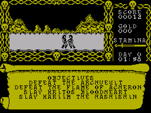 Седьмая игрушка в этой части ОБЗОРА, тоже не для слабоумных. СТРАНА МАПОВ это наше, отечественное произведение искусства и от- носится оно к популярным в последнее время клонам "3Н" (кто догадается, что такое "3Н" , может погладить себя по умной голо- ве!). Хотя называть игру клоном "Наследия" только за то, что в ней присутствует ста- тическая графика и выбор возможных команд производится с помощью меню, скорее слиш- ком самонадеянно. Скорее эта игра ближе по интерфейсу к DANGER MOUSE. Итак, уже в который раз за этот ОБЗОР, злобные Авясы и Немесы переступили черту всякой наглости и начали жечь и грабить вашу родную землю. Победить их может только герой-одиночка, то есть именно вы. А для победы нужно замочить мифического АВОКА - короля Авясов, живущего в замке Мешант. Кроме того, неплохо-бы собрать 10 свитков с заклинаниями, что поможет в борьбе с королём. Как я уже говорил выше, в игре присутству- ет графика в виде статического окна 9 на 6 знакомест, где появляется в меру краси- вая картинка того места, где вы находитесь в данный момент. Правее отображается спи- сок возможных действий, из которого можно выбирать самое возможное с помощью курсо- ра. В нижней части экрана отображается ва- ша выносливость и печатается текст описа- ния локации. Игра доволно интересна и даже я, уделил часа два исследованию окрестностей замка, хотя в игры подобного типа играю редко. В целом я вам рекомендую найти эту программу и надеюсь, что вы проведёте с ней много интересных вечеров, ожидая появления "3Н2" (что такое "3Н2", я надеюсь, все поняли ?)![]()