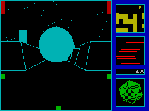 Даже трудно сказать, о чём эта игра. Из приложенной фирменной инструкции мне стало ясно совсем немногое. Вы управляете объек- том под названием HEDROID. Объект этот движется по лабиринтам города(?) GYRON, с целью достигнуть его центра. Огромного размера шары (BALLS), и излучающие страш- ную энергию башни (TOWERS) мешают вам в этом. Хотя на самом деле, всё наверное на поря- док круче, ведь к игре приложила руку фир- ма TORUS LTD, известная по хиту всех вре- мён и народов - ELITE. Но разобраться в GYRON'е дано не каждому, хотя я рекомен- дую попробовать это сделать. Результаты "разборки" можете присылать к нам в журнал для обобщения и публикации. Игра действительно стоит того, чтобы за- няться ею всерьёз и надолго...GYRON ATRIUM