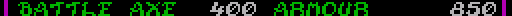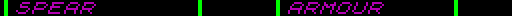 рью и спрятаны древние волшебные предметы? Вы это скоро узнаете! TREASURE. --------- Иша сокровиша можно наткнутся на все что угодно: на монстра, при- таившегося в засаде, и на всякие полезные микстуры, и наконец на сами сокровиша. C монстрами вроде все понятно, а вот микстуры разберем подробнее: MOVES-после применения,число Ва- ших шагов увеличится вдвое. RESILIANSE-увеличивает Вашу заши тную мошь при нападении монстра. STRENGHT-увеличивает силу Вашей атаки. HOLY WATER-Святая Вода. Как я не старался она не дала эффекта. HEALING-самый заветный напиток, восстанавливает четыре жизни. HEROIC BREW-полезная штука, осо- бенно если первая атака провали- лась или в комнате два монстра. LOSE-яд,отбирает одну жизнь. Наконец сами деньги.За раз мож- но найти: 10;20;25;50;60;100 зо- лотых монет.Их можно потратить в оружейном магазине.Для этого на- до в главном меню выбрать опцию BUY EQUIPMENT. Переведем. Оружие: Доспехи: Посох Короткий меч Щит Широкий меч Шлем Боевой топор Кольчуга Арбалет Латы Ручной топор Мешок КопьеИногда попадаются невидимые