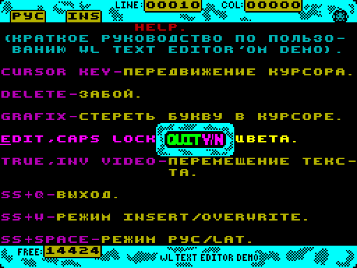 НОВЫЙ ТЕКСТОВОЙ РЕДАКТОР. BOT ЕГО ВОЗМОЖНОСТИ: 1.МОЖНО НАПЕЧАТАТЬ ТЕКС B ЦВЕТЕ. 2.ЕСТЬ ПРОСЛУШИВАНИЕ МЕЛОДИИ. 3.ВЫДЕЛЕНИЕ КУРСОРА ЦВЕТОМ И ПОЛОСКОЙ. ВЕСЬ ТЕКСТ (КРОМЕ ЭТОГО)ПИСАЛСЯ B ЭТОМ РЕДАКТОРЕ!