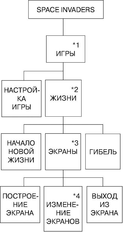 Вам знакома игра SPACE INVADERS? На рис. 7 приведена структурная диаграмма этой игры и, надо сказать, в эту структуру уложились бы еще сотни разных "стрелялок".